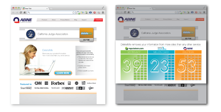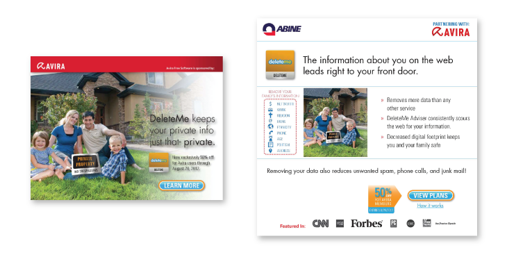 While working as a contract designer for Abine, a startup company that develops and offers tools for online privacy, I created marketing concepts and designs for a new website, banner ads and print materials.