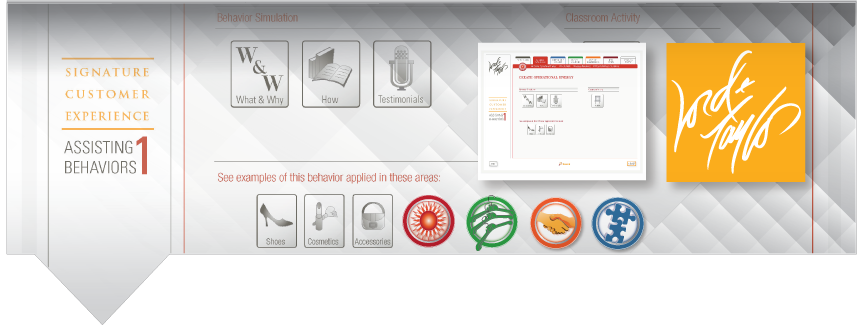 As the lead designer at TYG, I created a number of employee education systems that included both print and web components. For Lord & Taylor, I developed the wireframe and Flash interface for an online training program, working within Lord & Taylor’s establish brand to create a unique look and feel.
